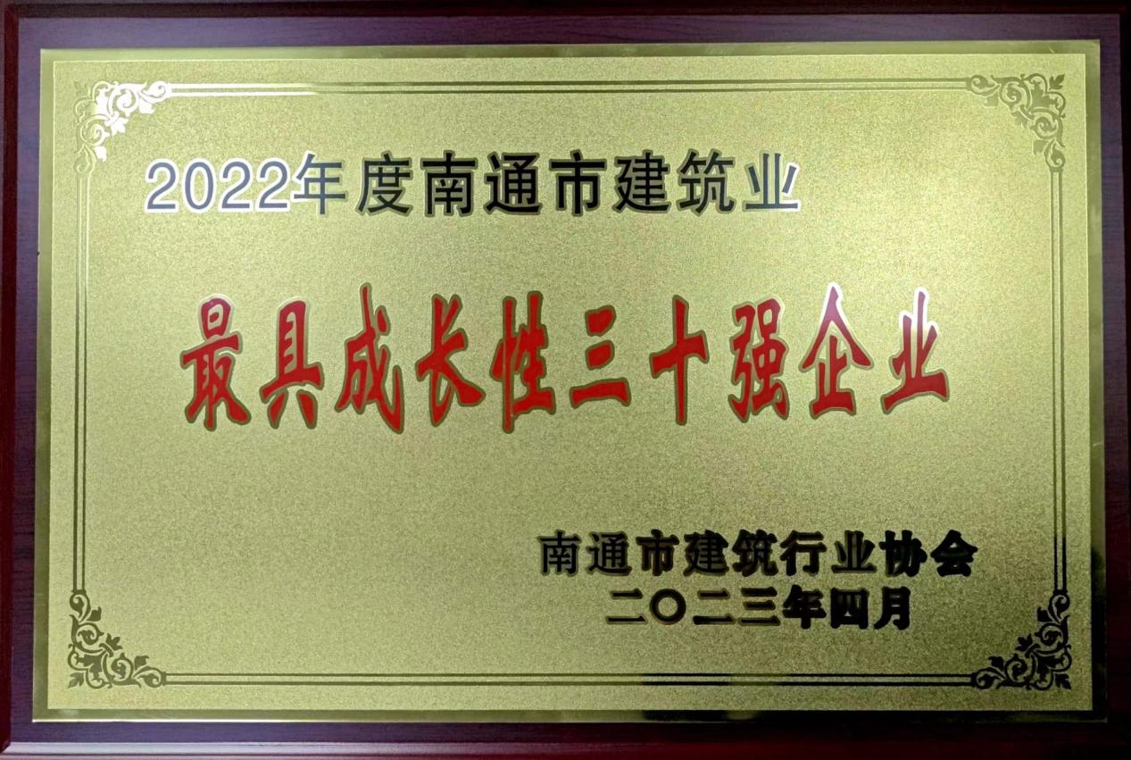 公司再獲“2022年度南通市建筑業(yè)最具成長性三十強”企業(yè)及顧建輝“優(yōu)秀企業(yè)家”雙殊榮